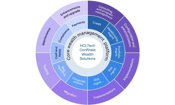 HCLTech Confinale Wealth Solutions ist die erste Geschäftseinheit ihrer Art, die Wealth-Tech-Lösungen, insbesondere für digitale Vermögensplattformen wie Avaloq, anbietet. Confinale Wealth Solutions wurde nach der Übernahme von Confinale gegründet, einer Marke, die für die Transformation der WealthTech-Branche und die Servicebereitstellung in der Wealth-Industrie steht. Confinale Wealth Solutions bietet einen industrialisierten Ansatz für die Gewährleistung von End-to-End-Dienstleistungen zur Transformation der Vermögenswertschöpfungskette, einschließlich Beratung, Implementierung, Wartung und Erweiterung, Cloud-Migration sowie WealthTech-fokussierte Produkte und Accelerator.